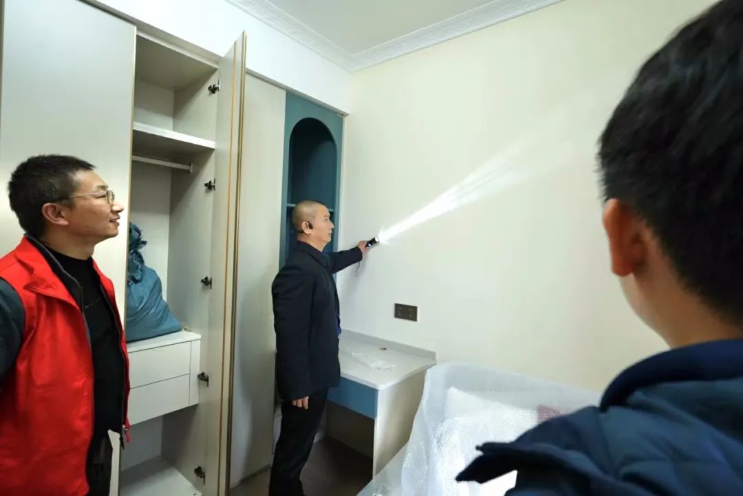 品質(zhì)大宅不僅需要精心設(shè)計(jì)、合理規(guī)劃空間布局,更需要高品質(zhì)的施工,在現(xiàn)場(chǎng),工藝標(biāo)準(zhǔn)經(jīng)驗(yàn)豐富的張總與現(xiàn)場(chǎng)監(jiān)理、質(zhì)檢以及施工師傅搭手實(shí)操交流,墻面找平膩?zhàn)蛹记?、門口的收邊工藝、輕鋼骨工藝驗(yàn)收、水電鋪設(shè)、板材進(jìn)場(chǎng)、衛(wèi)生間廚房貼磚……事無巨細(xì),對(duì)每道施工工序改進(jìn)、提升都給出了實(shí)用可行的建議。