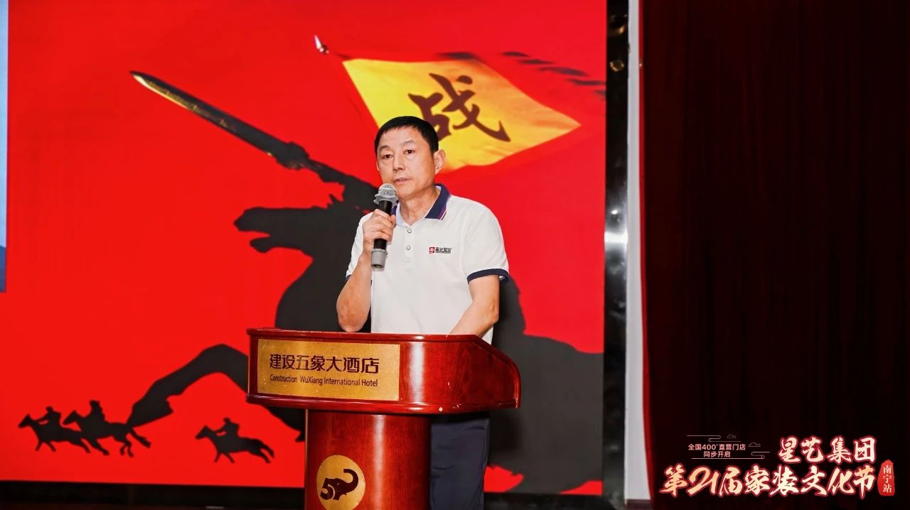4月10日,星藝裝飾第21屆裝飾文化節(jié)(廣西站)啟動(dòng)誓師大會(huì)在廣西建設(shè)五象大酒店多功能廳隆重舉行。星藝集團(tuán)副總裁凌峰、星藝廣西區(qū)域總監(jiān)徐橘、廣西區(qū)域副總經(jīng)理蔣京武、星藝南寧區(qū)域總經(jīng)理周平生、南寧區(qū)域總監(jiān)李明、南寧區(qū)域副總經(jīng)理胡四民以及星藝廣西區(qū)域各分公司總經(jīng)理、總監(jiān)、門店經(jīng)理、員工代表、材料商家代表約七百余人齊聚一堂,共同學(xué)習(xí)奮進(jìn),以精神飽滿的姿態(tài)一起啟動(dòng)星藝裝飾第21屆家裝文化節(jié)(廣西站)?,F(xiàn)場(chǎng)氛圍火熱,氣勢(shì)如虹,為啟動(dòng)年度最值得期待的家裝盛宴吹響第一陣號(hào)角。
