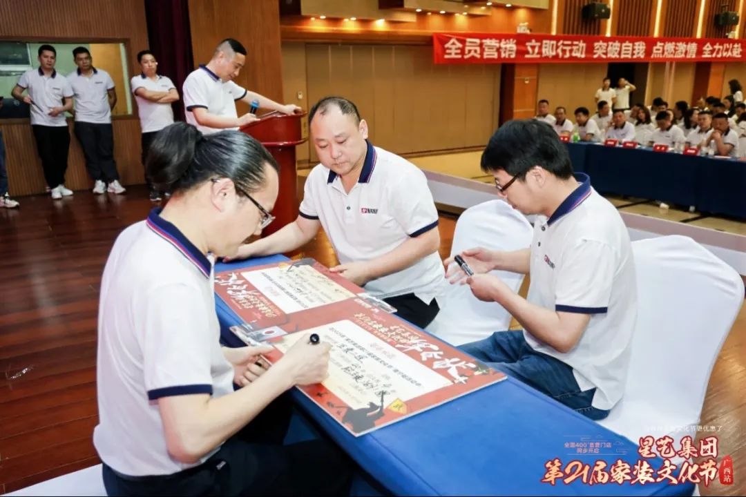 伴隨著滿滿的儀式感中,廣西區(qū)各個(gè)代表、各部門逐一上臺(tái)簽訂目標(biāo)責(zé)任狀。團(tuán)隊(duì)英姿喚發(fā),眾志成城,以亢奮的激情展示團(tuán)隊(duì)精神風(fēng)貌;員工斗志昂揚(yáng),信心滿滿,誓師堅(jiān)決完成任務(wù),一定超越目標(biāo)。五十余家建材聯(lián)盟商家也上臺(tái)進(jìn)行質(zhì)量承諾宣誓,在活動(dòng)中必將明碼標(biāo)價(jià),保證產(chǎn)品質(zhì)量,讓消費(fèi)者得到最實(shí)惠的品質(zhì)產(chǎn)品。